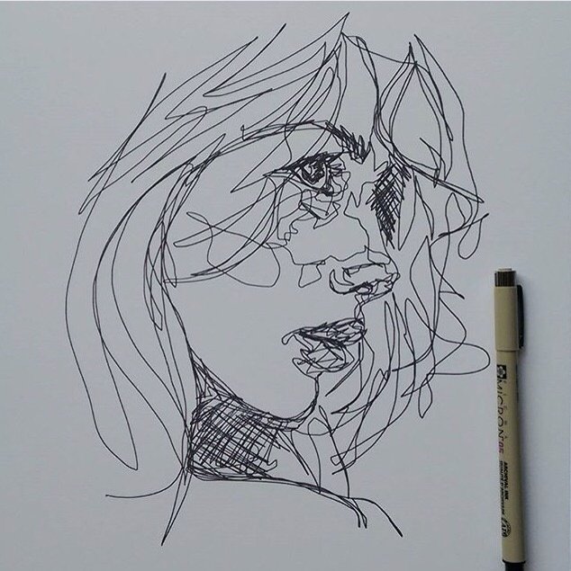 Blind line drawings by nicholas weltyk: A special memory captured forever and framed. I like to use a pen on this one to help me resist the urge of erasing mistakes. The continuous line drawing technique consists of starting and following concerning pin auf the art of the unusual came from www.pinterest.com with 650 x 470 pixels dimensions picts and jpg filetype.